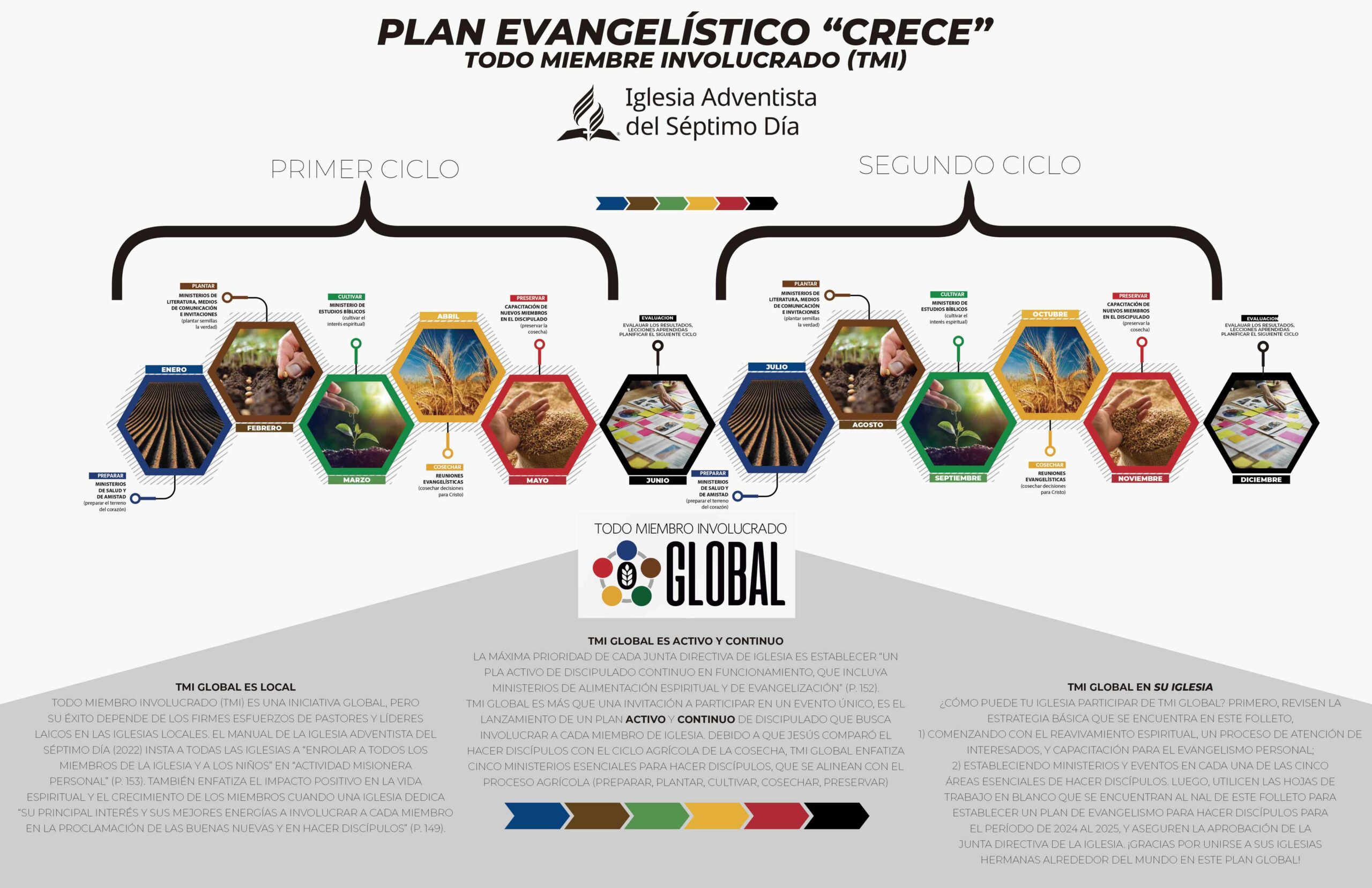 Descubra el Plan Evangelístico CRECE una iniciativa transformadora desarrollada bajo el marco de "Todo Miembro Involucrado". , que nos llama a asumir con responsabilidad y gozo nuestra misión como iglesia. Este plan presenta un enfoque estratégico y bien estructurado, diseñado para fortalecer el compromiso espiritual, fomentar la participación activa de cada creyente y guiar a la iglesia en el cumplimiento de su mandato evangelizador. CRECE no es solo un programa: es una invitación a reflexionar sobre el papel único y vital que cada uno de nosotros puede desempeñar en la propagación del mensaje de salvación. Únase al movimiento. Involúcrese. CREZCA. Y sea parte activa del cumplimiento de la misión.