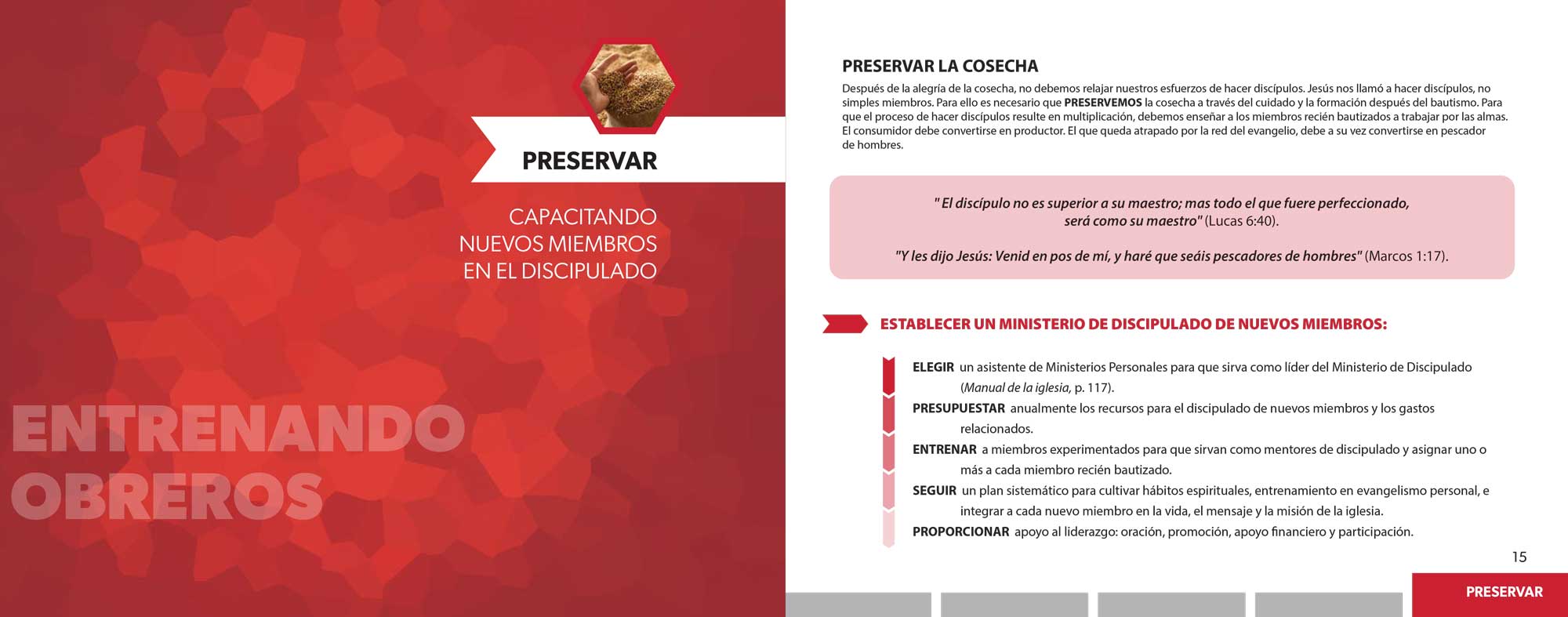 Después de la alegría de la cosecha, no debemos relajar nuestros esfuerzos de hacer discípulos. Jesús nos llamó a hacer discípulos, no simples miembros. Para ello es necesario que PRESERVEMOS la cosecha a través del cuidado y la formación después del bautismo. Para que el proceso de hacer discípulos resulte en multiplicación, debemos enseñar a los miembros recién bautizados a trabajar por las almas. El consumidor debe convertirse en productor. El que queda atrapado por la red del evangelio, debe a su vez convertirse en pescador de hombres.
