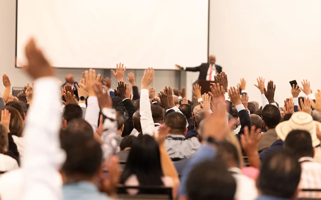 “Somos más de 450 delegados aquí hoy, muchos asistiendo a su primer Congreso de la Asociación General”, dijo el Pastor Elie Henry, presidente de la División Interamericana, después de que decenas de delegados levantaron la mano cuando se les preguntó si esta era la primera vez que asistían a un Congreso de la Asociación General. “Pueden comprender la magnitud de este momento para nuestra delegación y para la iglesia”.