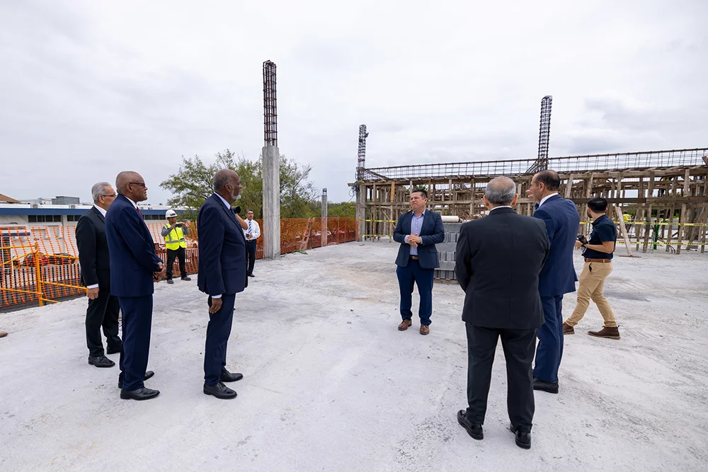 Los líderes de la iglesia recorren con los directivos de la universidad la segunda fase del proyecto de construcción en el nuevo edificio del centro de aprendizaje. [Fotografía: Daniel Gallardo/DIA]Aunque algunos equipos de simulación aún están en evaluación, como software y dispositivos especializados, los avances son notables, dijo García.